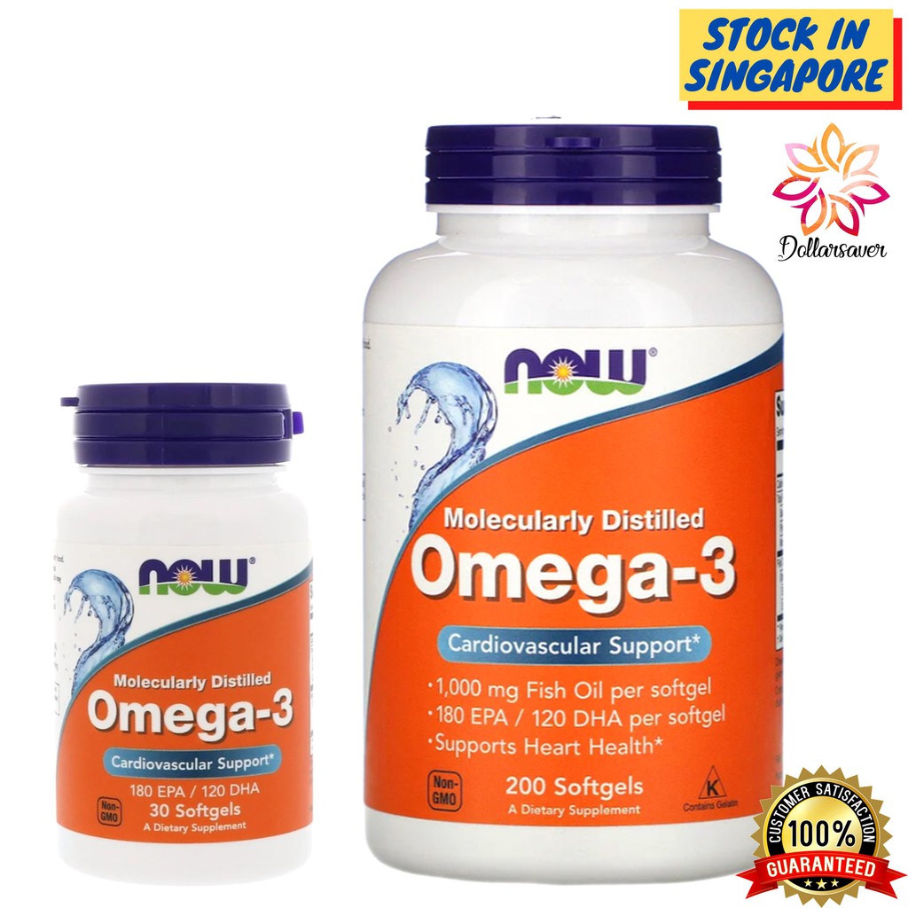 Omega 3 Fish Oil 1000mg Supplement Now Foods 60 / 200 / 500 Softgel